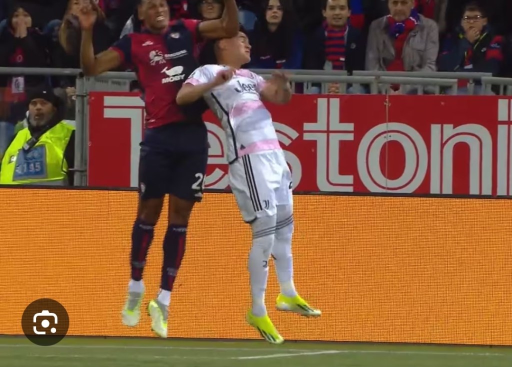 An episode bordering on the incredible in the Cagliari area: the Juventus player suffers a very violent blow, according to the referee everything is fine and not even a warning from Lissone