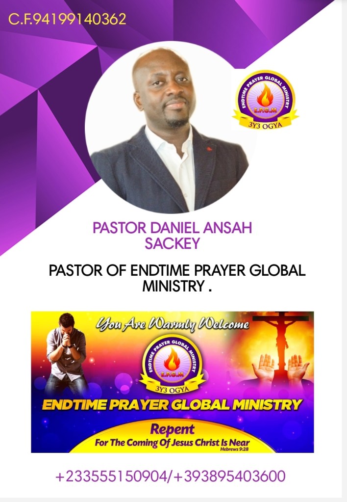 TO GOD BE THE GLORY::ENDTIME PRAYER GLOBAL MINISTRY WAS STARTED ON SUNDAY 25TH MAY 2014..E.P.G.M. STARTED ON ACCRA 24.COM RADIO GERMANY AND LATER ON TRUE GOSPEL RADIO ITALY. ON 21ST NOVEMBER 2016, BY THE GRACE OF GOD WE STARTED THE MINISTRY AT