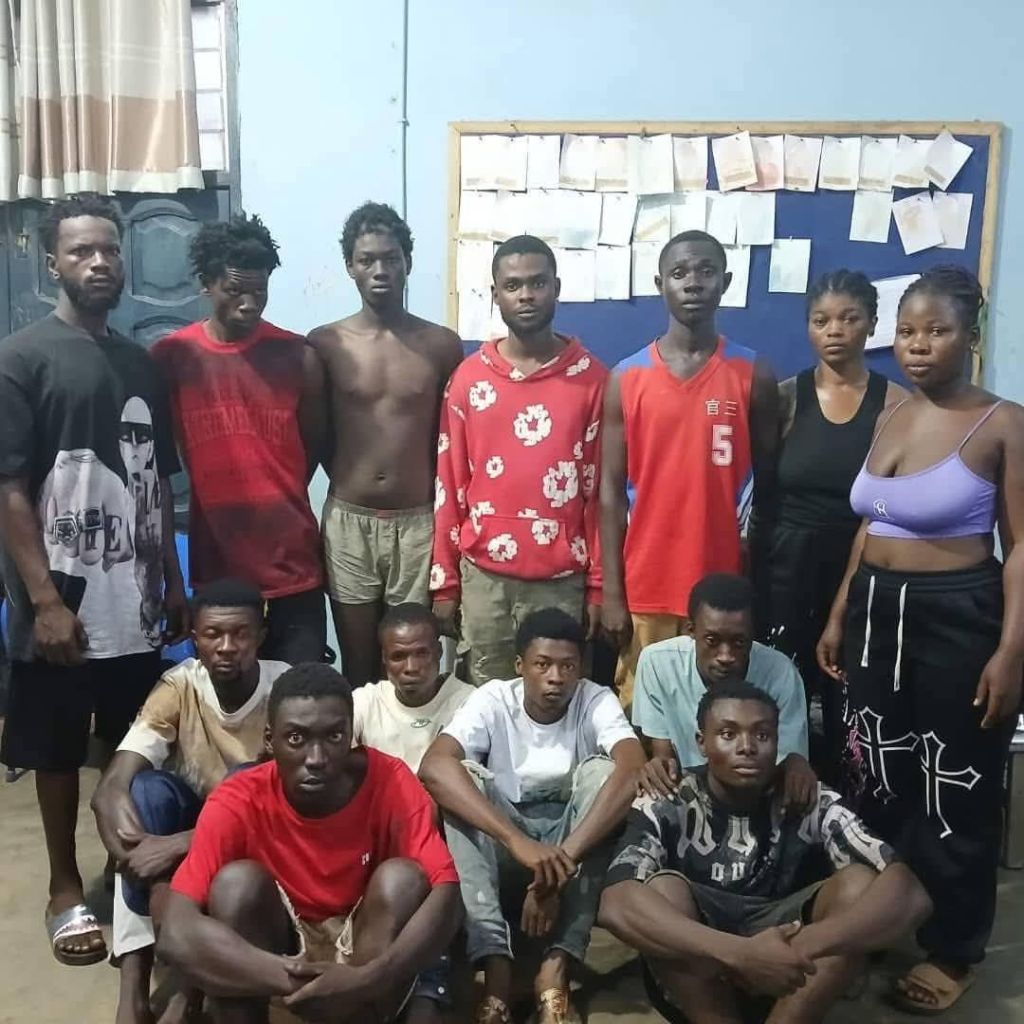 13 suspects namely: Mubarack Alhassan age 26, Amoako Prosper age 28, Manarf Inusah age 19, Owusu Amos age 23, Suleman Mudasel age 18, Comfort Frimaa age 20, Samuel Nimoh age 22, and Ridwan Mohammed age 21 were arrested at Abamu.